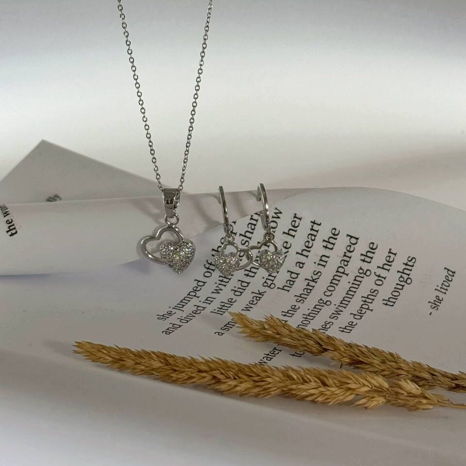 نیم ست جواهری نگین قلب