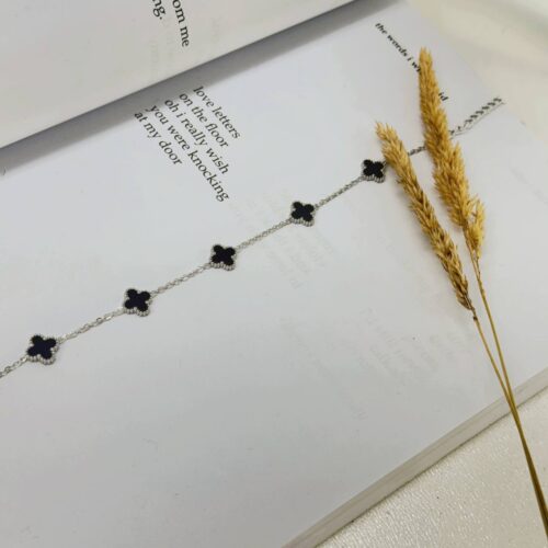 دستبندی برای خانمهای خاصپسند. این طرح با استفاده از تکنیک رنگآمیزی صدف و مشکی (یا میناکاری)، جلوهای باکیفیت و کلاسیک دارد. استحکام و ثبات رنگ این دستبند تضمین میکند که برای سالها مانند روز اول بدرخشد. طراحی نمادین شبدر، نماد خوششانسی است و این دستبند را به یک هدیه فوقالعاده و پر معنی تبدیل میکند. سبک وزنی و راحتی آن، امکان استفاده روزمره و بدون دردسر را فراهم میکند.