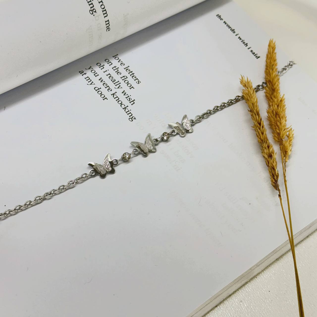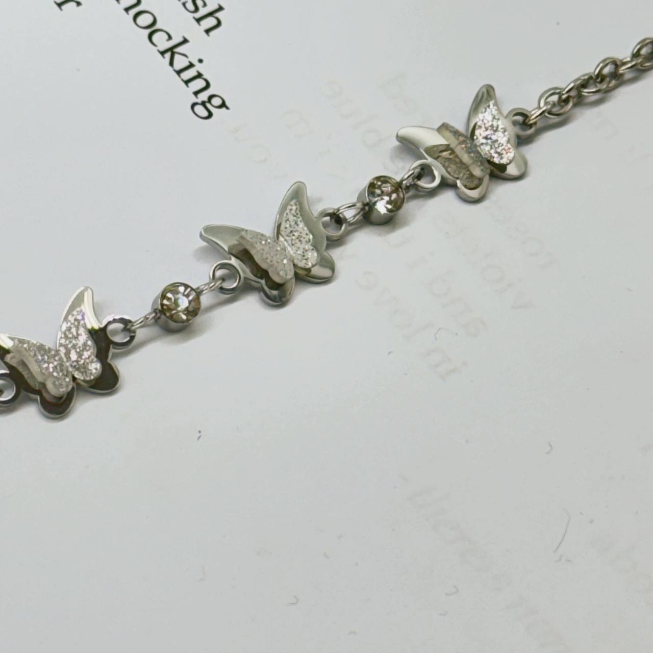• طراحی: زنجیر ظریف با سه آویز پروانه نگیندار و کریستالهای درخشان