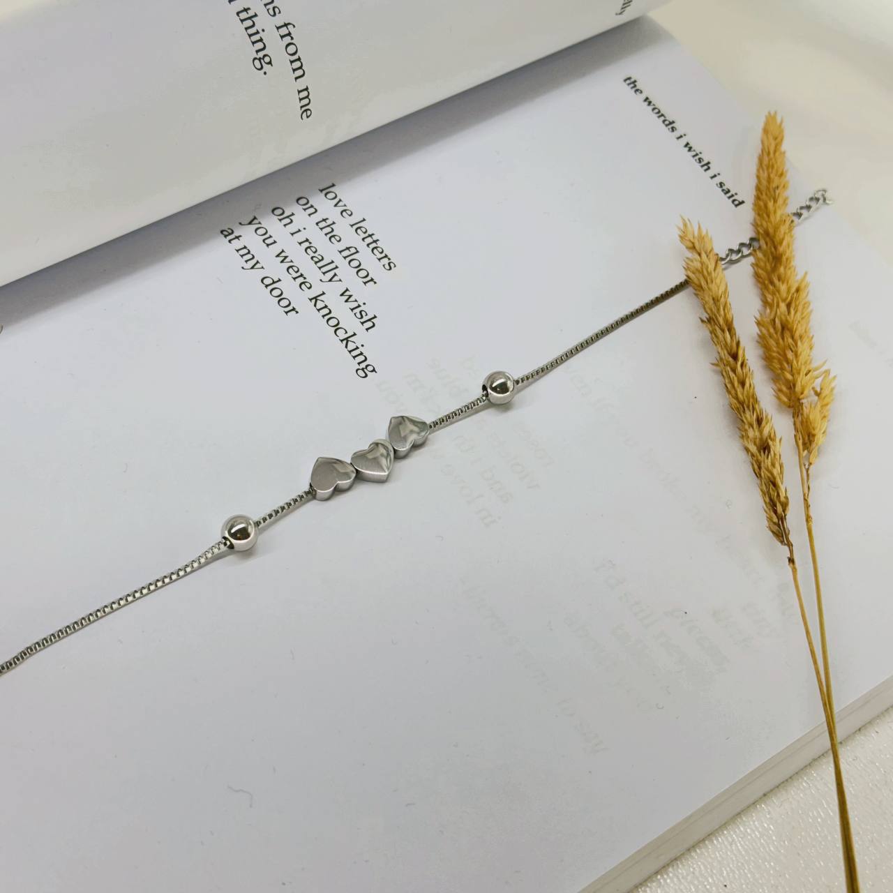 این دستبند خاص با طراحی سه قلب نقره‌ای در مرکز و دو مهره‌ی براق در اطراف، انتخابی ایده‌آل برای علاقه‌مندان به سبک‌های مینیمال و عاشقانه است. قلب‌ها به شکلی ساده و شیک طراحی شده‌اند که برای استفاده روزمره یا هدیه به عزیزان بسیار مناسب است.